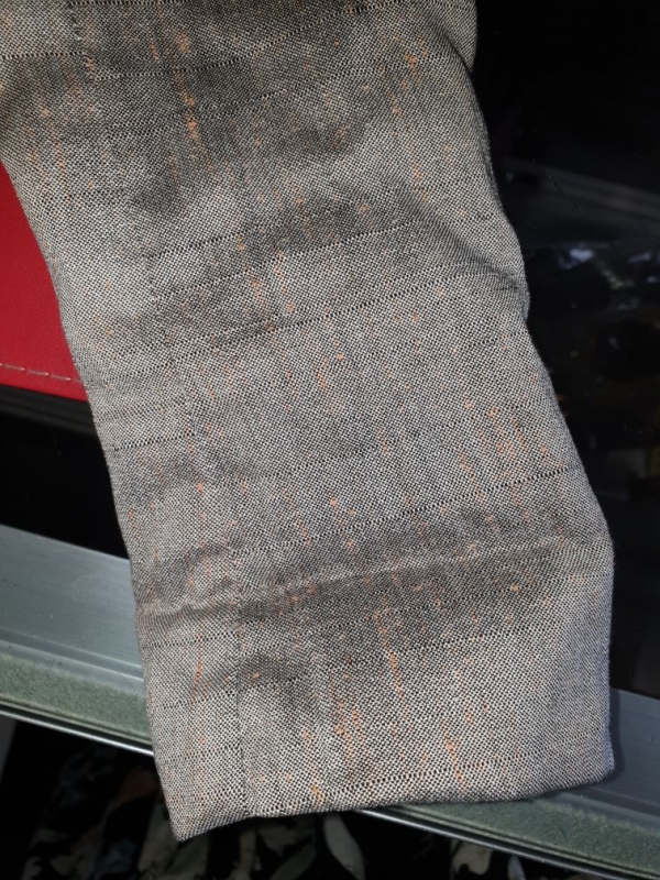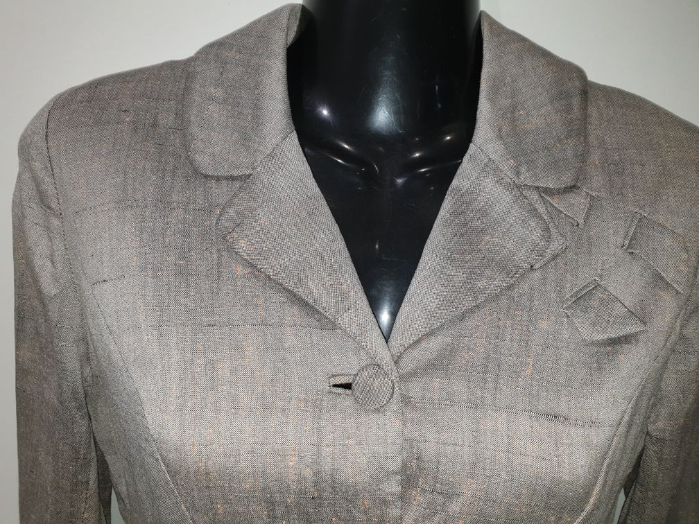 It is in exquisite condition, the fully lined jacket has many added features. These include a half belt at the back, turned up cuffs and all original fabric covered buttons. The lining is crepe. It has been dry cleaned.