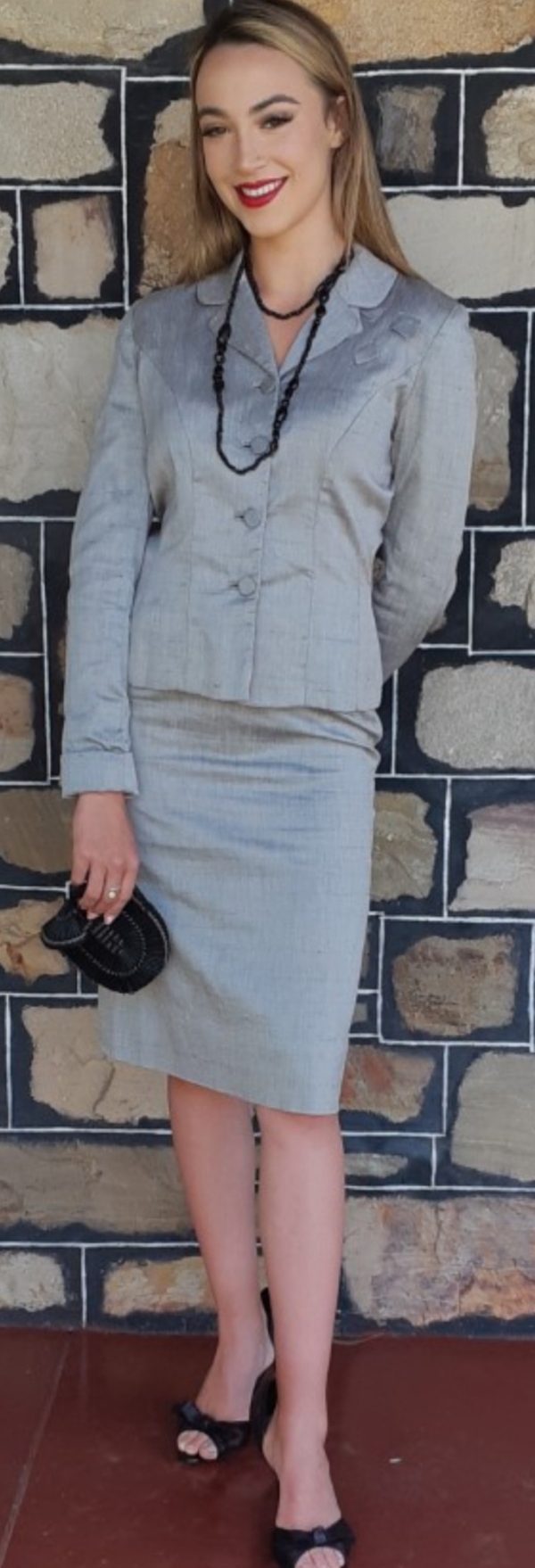1940’s Original Grey silk 2 piece suit, by ‘Betty Rose’, made in and imported from USA.