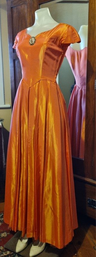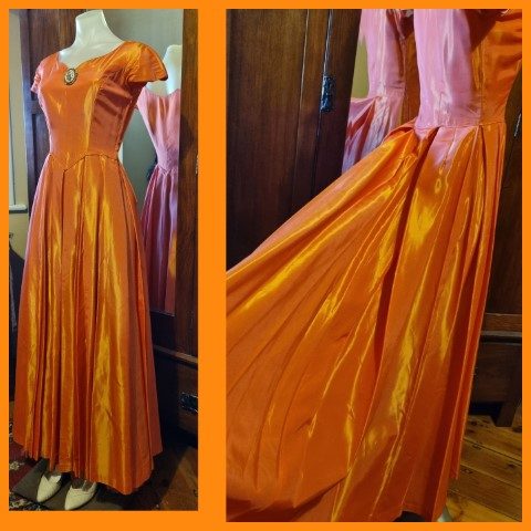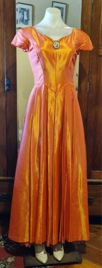 1940’s, Satin Gown, Apricot, Handmade, size 8
