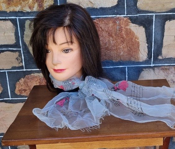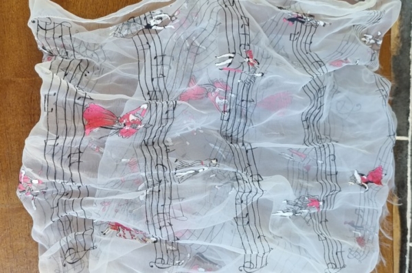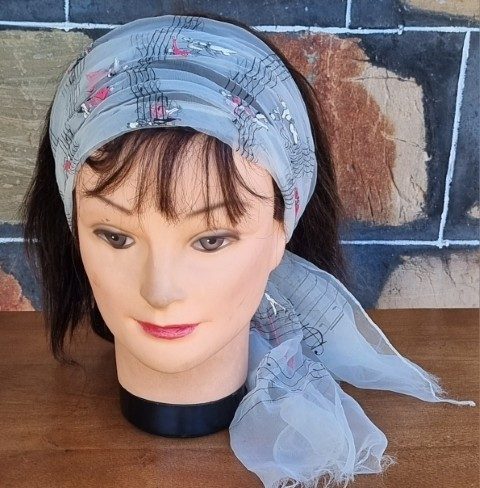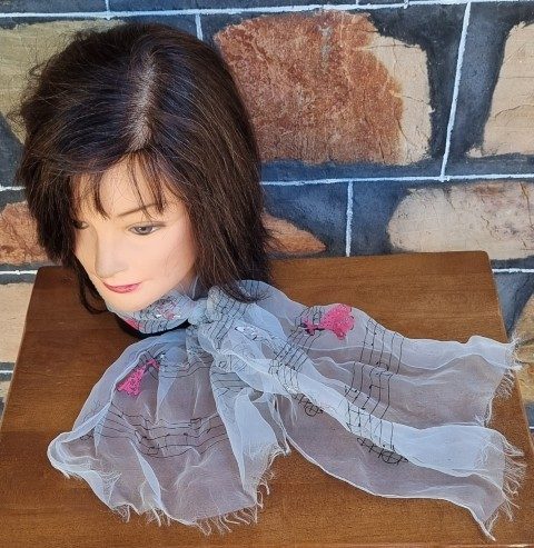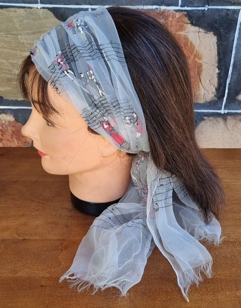 1940’s Vintage Long Scarf, Chiffon, dancer print, it is 113cm long and 37cm wide.