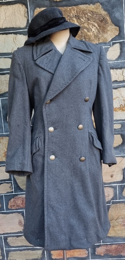 The tailoring on this coat is excellent. Designed for the brutal winters that the army were predicted to encounter. Thick wool, fully lined, double breasted. At first I thought it was just a man’s coat, but when it was small on my medium sized mannequin, I popped it her my size 10 ladies one, and it looks great on both.
