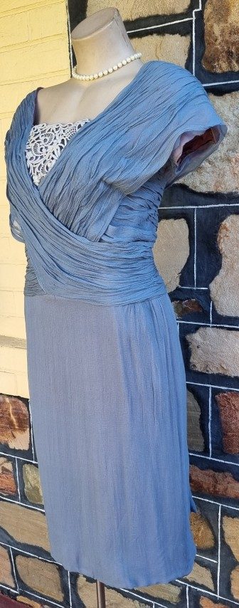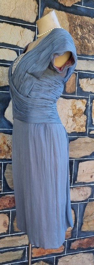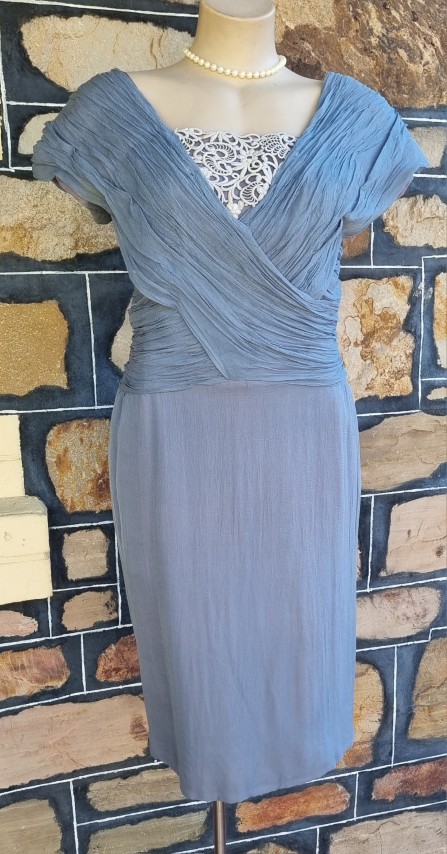 1950’s, Cocktail Dress, Sky Blue, chiffon, by ‘Jinoel of Melbourne’ size S