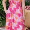 The chrysanthemum print, pink/orange/lavender, is a clever but unusual colour palette.