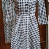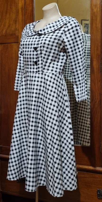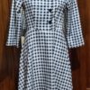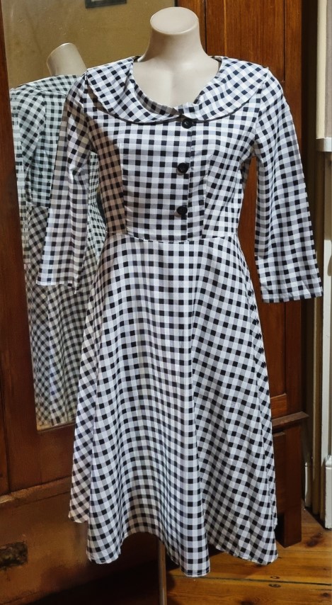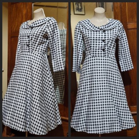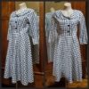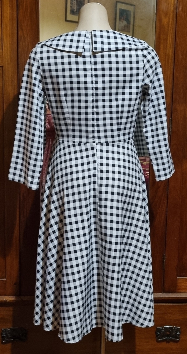1950’s Inspired Swing Dress, 3/4 sleeves, Black/white Checked, polyester, size S