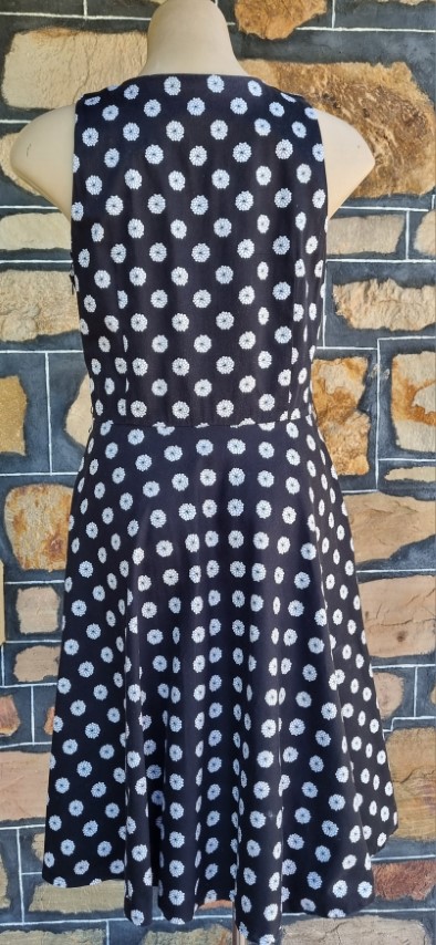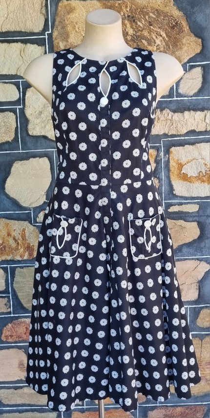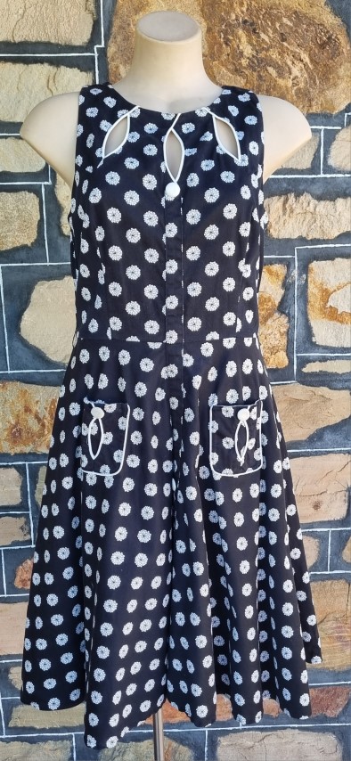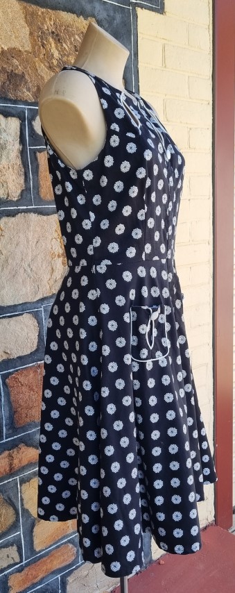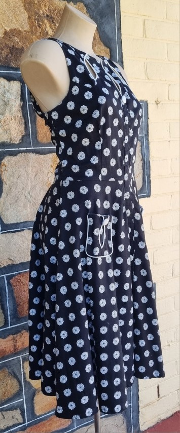 1950’s Inspired Swing Dress, by ‘Voodoo Vixen’, black/white daisy print, cotton, size M