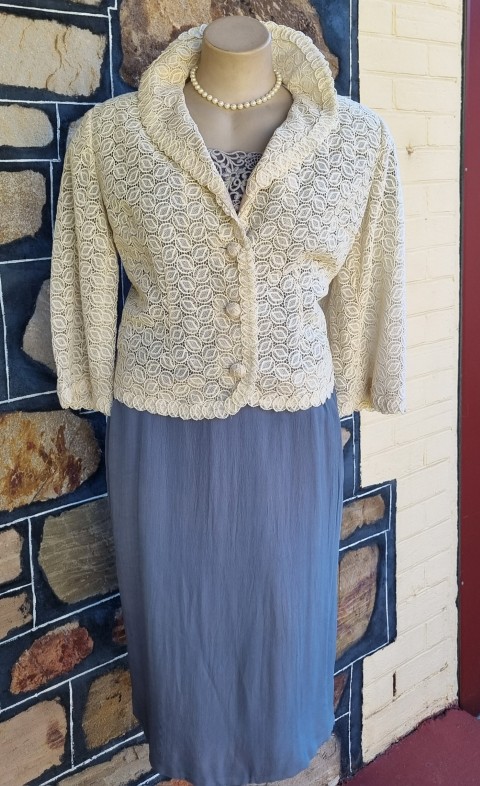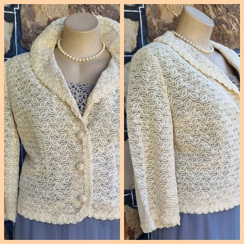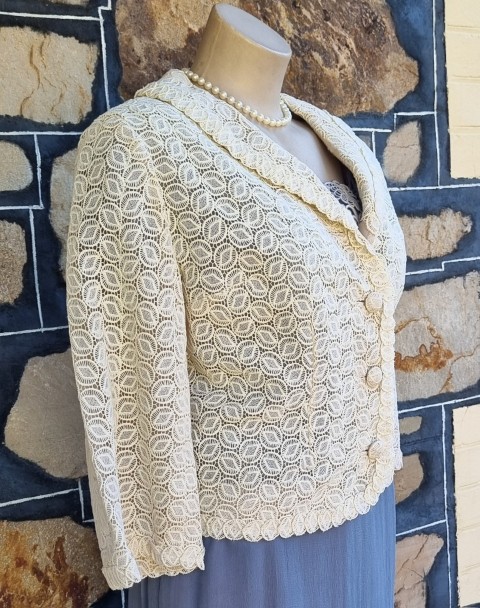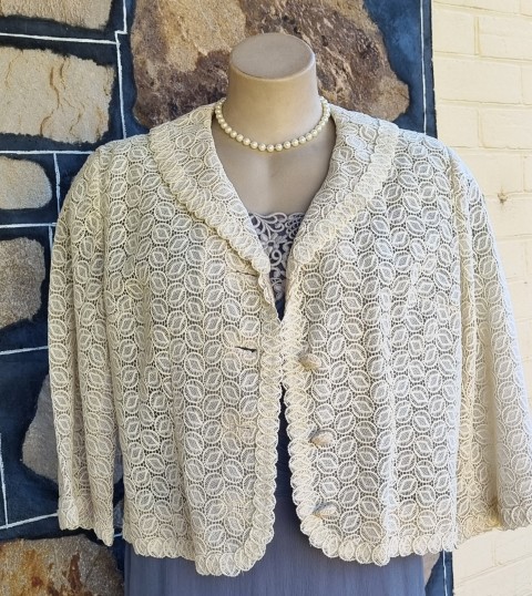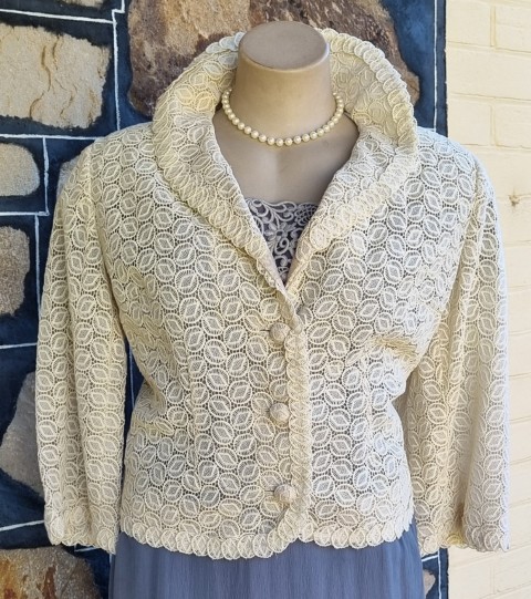 1950’s, Lace Cocktail Jacket, Cream, by ‘Elvie Hill, Young Elite, for David Jones’, size 18