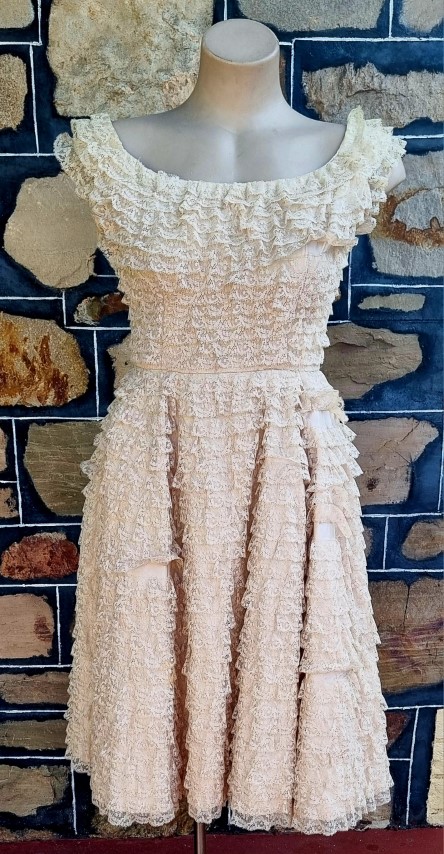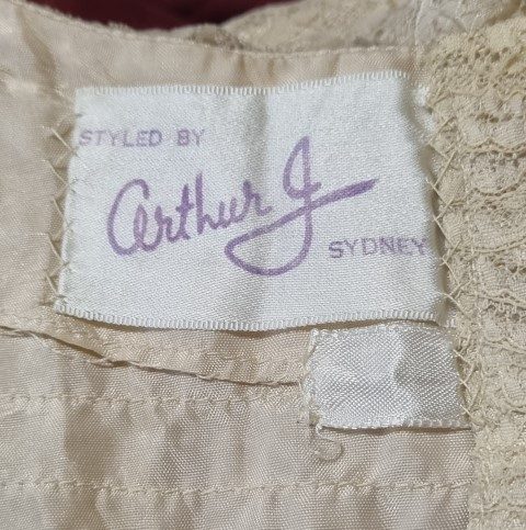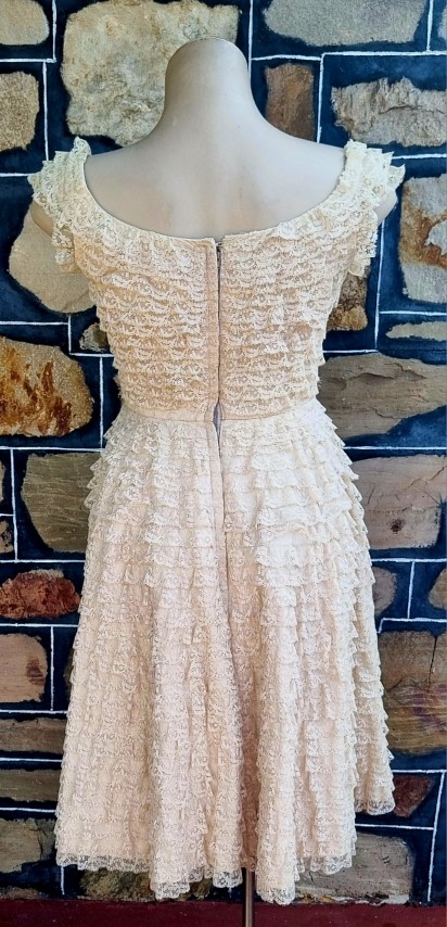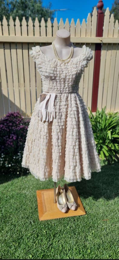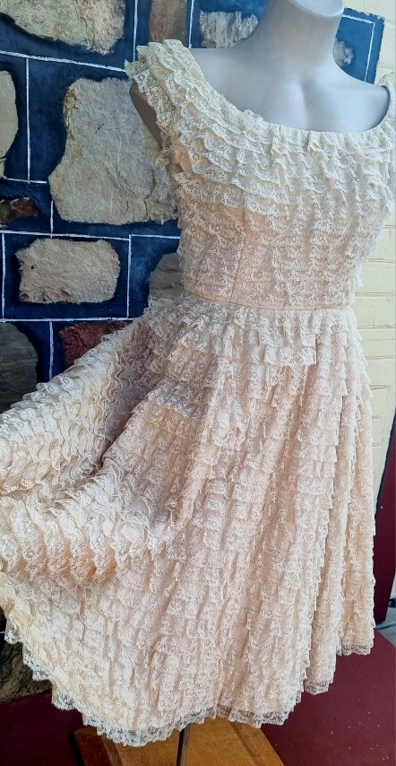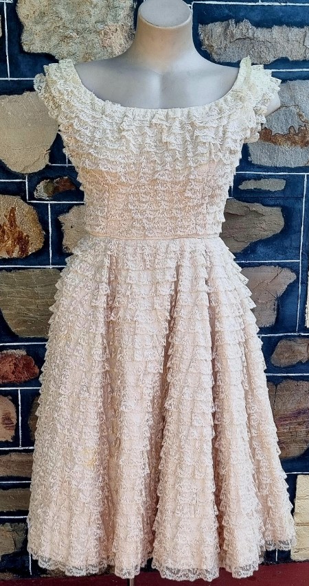 1950’s Party Dress, Champagne Lace, by ‘Arthur J of Sydney’, size S