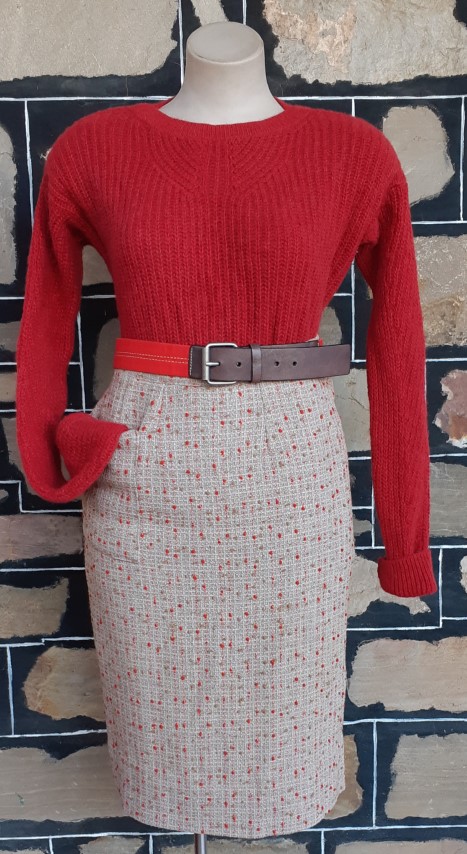 1950’s Pencil skirt, textured wool, coffee/red, by ‘Styleader’ of Melbourne