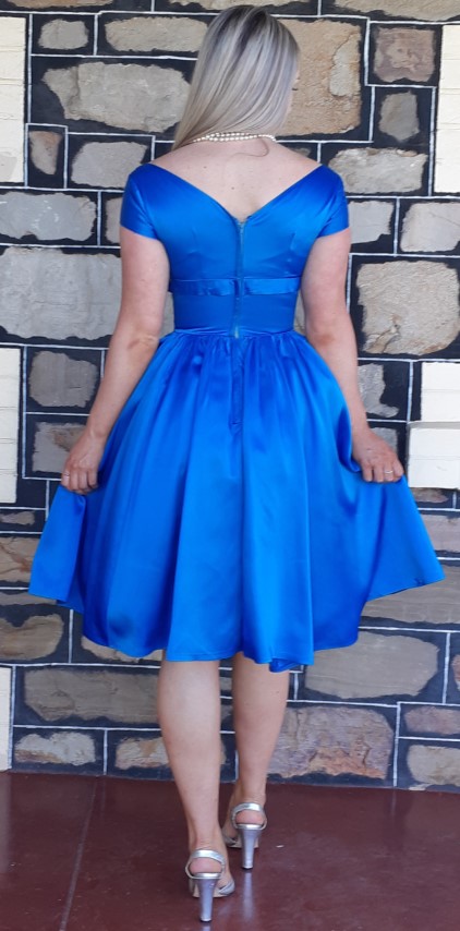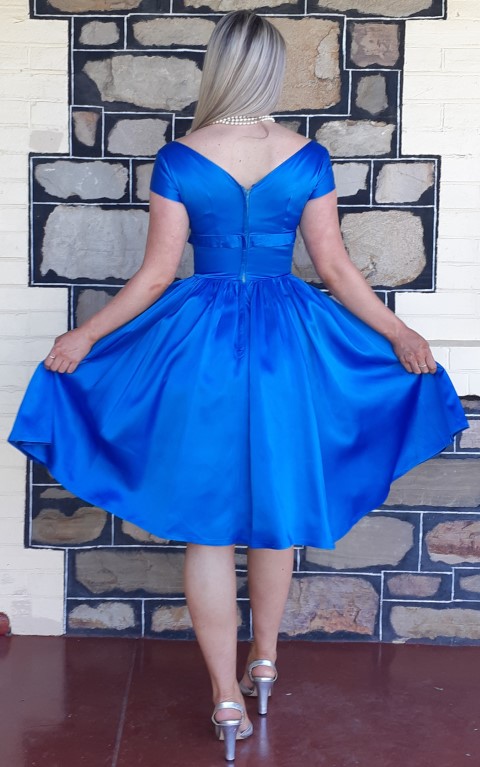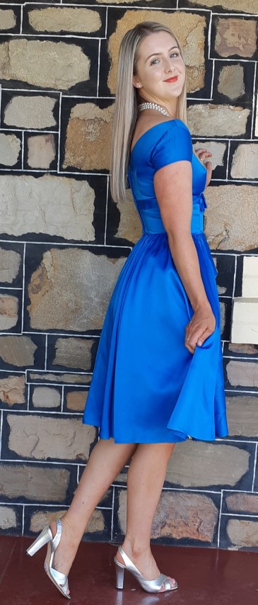1950’s Satin Cocktail frock, electric blue, handmade.