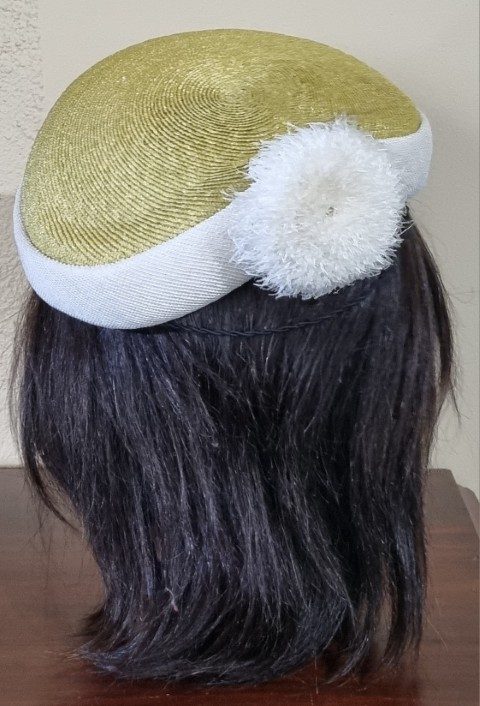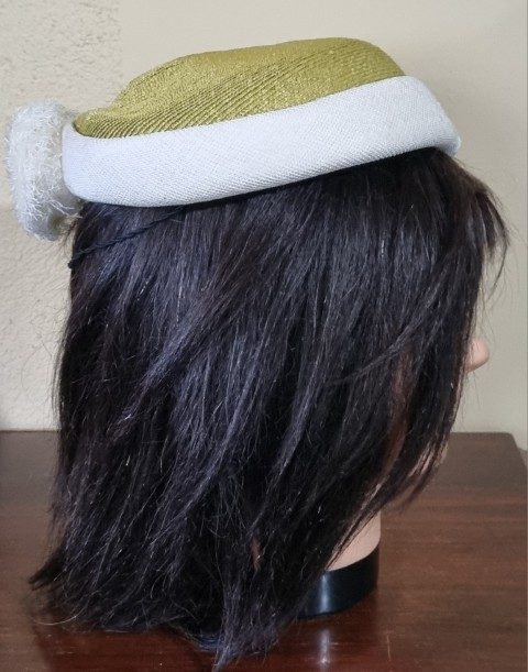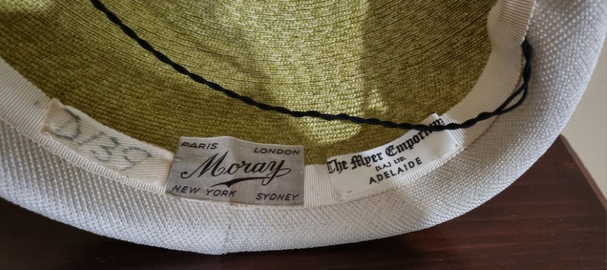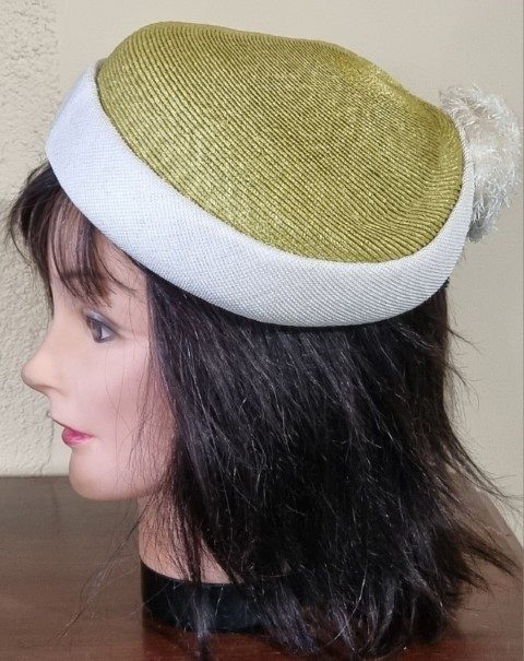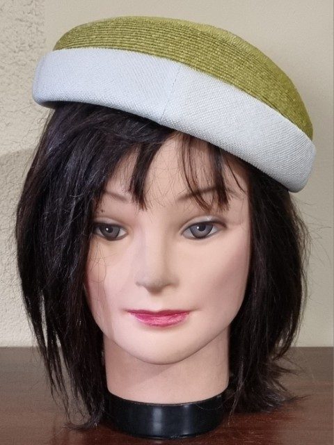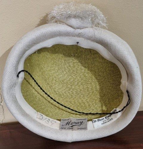 1950’s Vintage Hat, Sage/cream, polyester, by ‘Moray for Myer Emporium’ 51.5cm