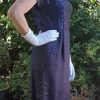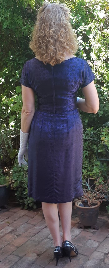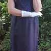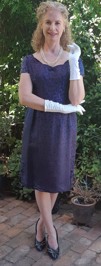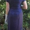 1960’s Boat Neck Cocktail dress, navy damask by (needs repair) ‘Irene’ . The label is adorable it reads ‘Made especially for you by Irene’