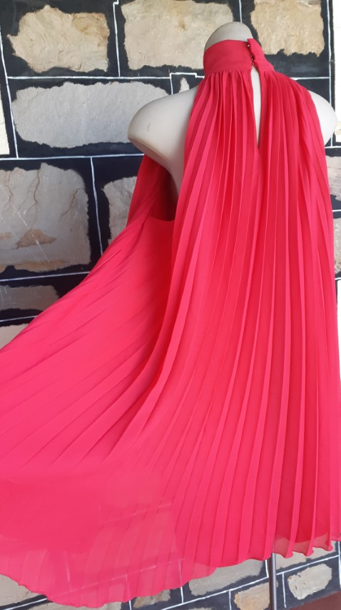 1960’s inspired, Raglan neckline Dress, Sun-Ray pleat, Watermelon, polyester, by ‘Silhouettes’ size 16