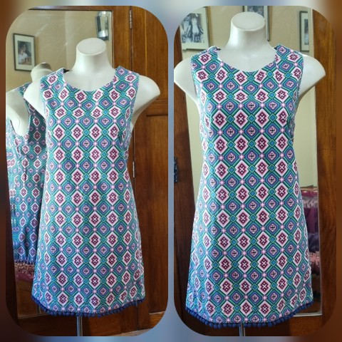 1960’s Inspired Shift Dress, Geometric Print, Cotton, by ‘Revival’, size 12.