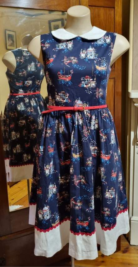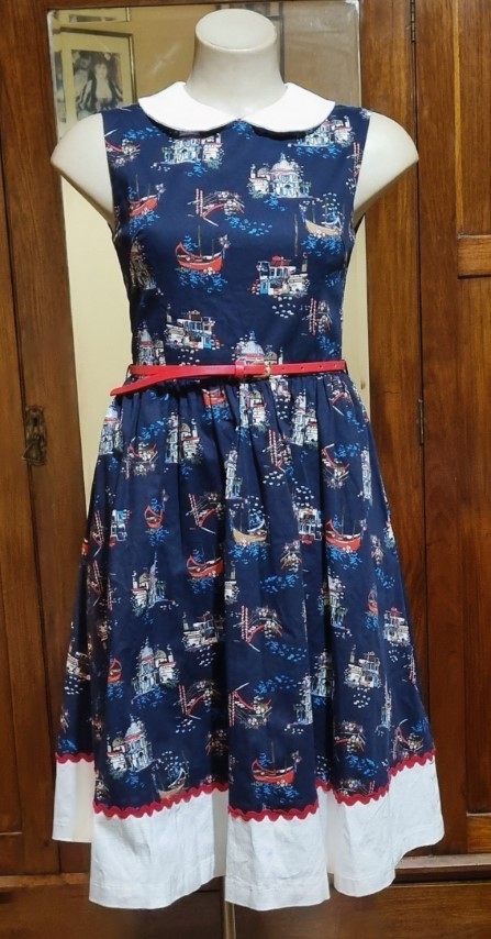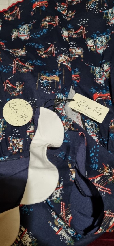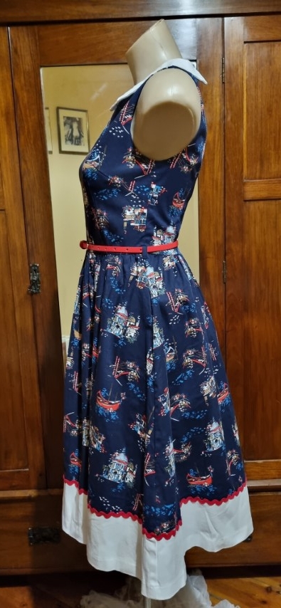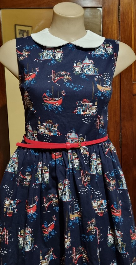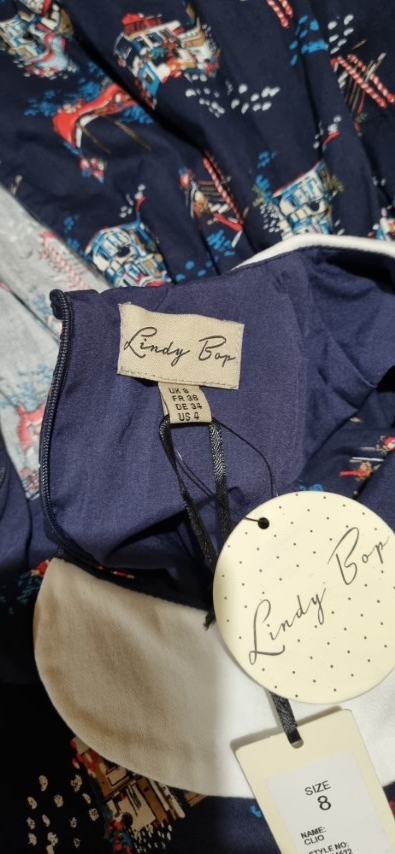 1960’s Inspired Swing Dress, by ‘Lindy Bop’, Venice Navy Print, ‘New’, size 8