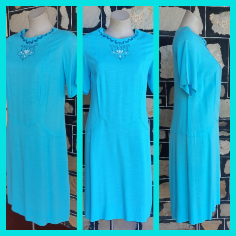 1960’s, Linen, Cap Sleeve Shift dress, handmade in and imported from USA, size 12-14
