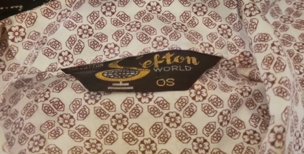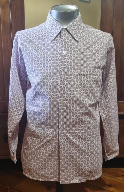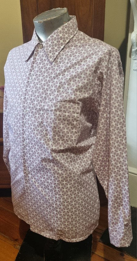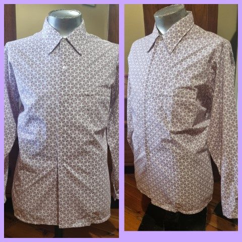 1960’s Men’s Shirt, Cotton, lavender/white print, by ‘Sefton World’, size L-XL