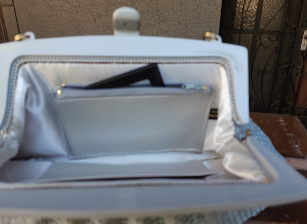 This cute mesh bag can be worn as an over the shoulder style or tuck the strap inside and it becomes a clutch bag.