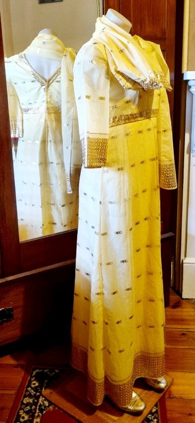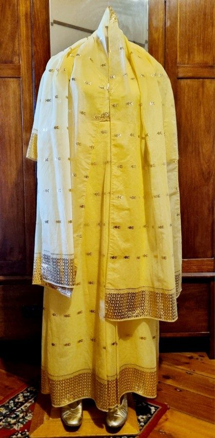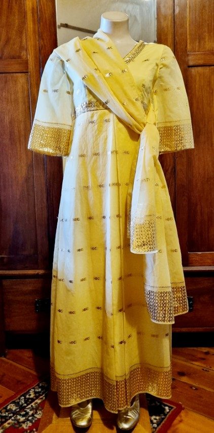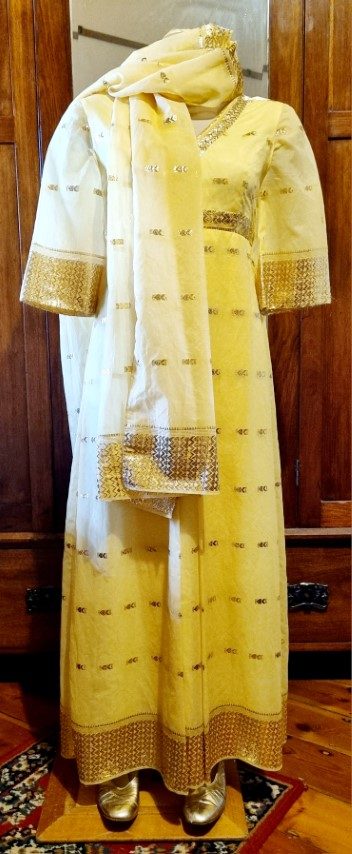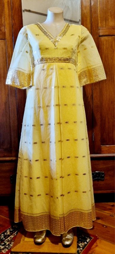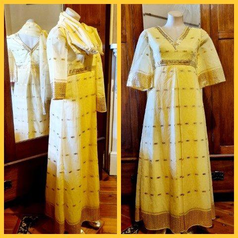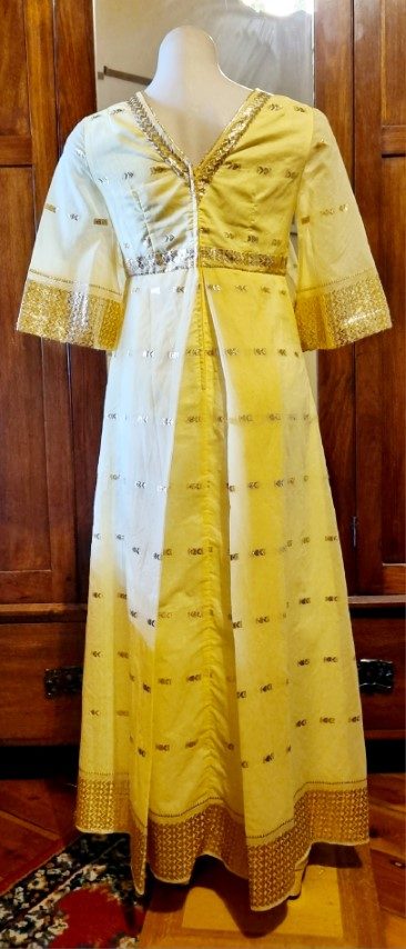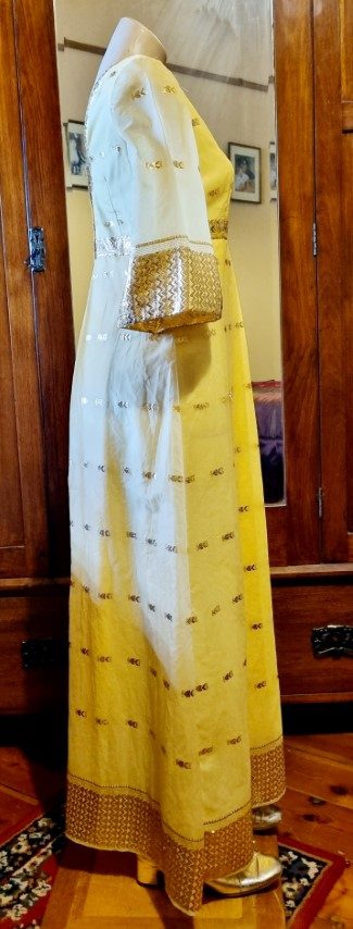 1960’s, Middle Eastern Dress with Sari, Yellow, nylon/polyester, handmade, size 8-10