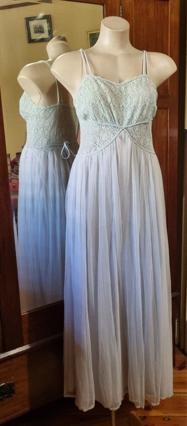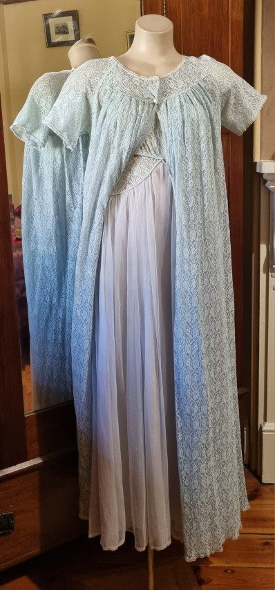 1960’s, Negligee Set, Powder Blue, nylon & lace, size 10
