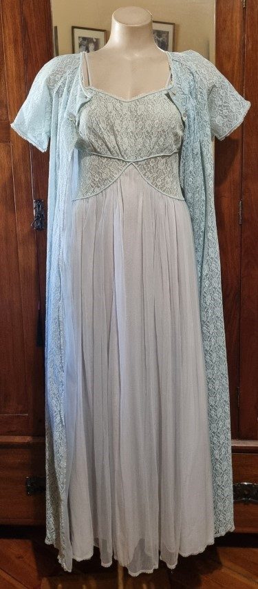 A very romantic night wear set, it includes the nightie and dressing gown.