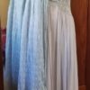 The nightie it appears, looks like it may have been worn a tad more than the dressing gown, it has faded a little, but is in very good condition other wise. In a flat lay the bust is 90cm, the length is 133cm and it too has 2 layers, both nylon.