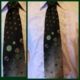 The bust is 36″, waist is 27″ , length to floor from shoulder is 52″.