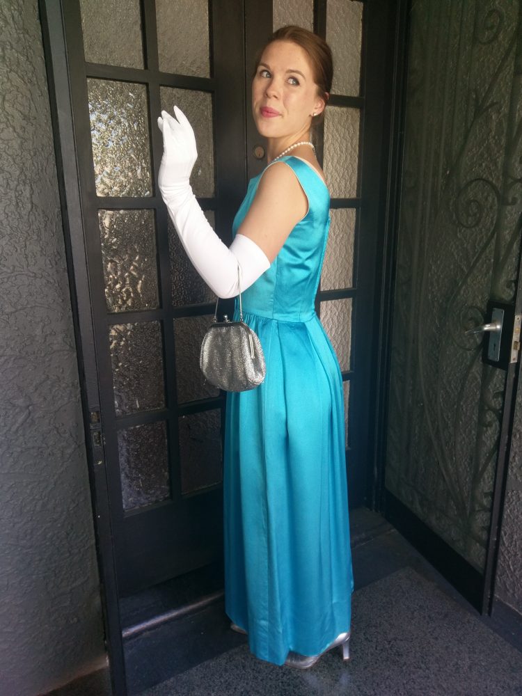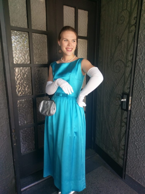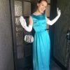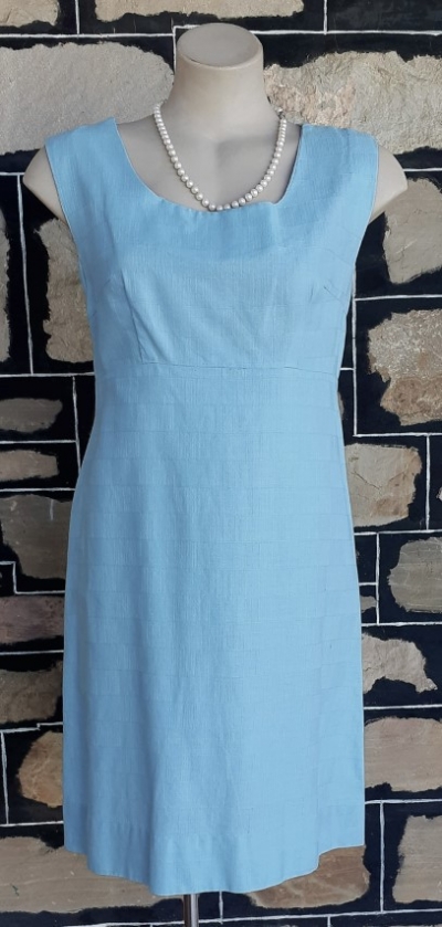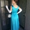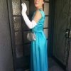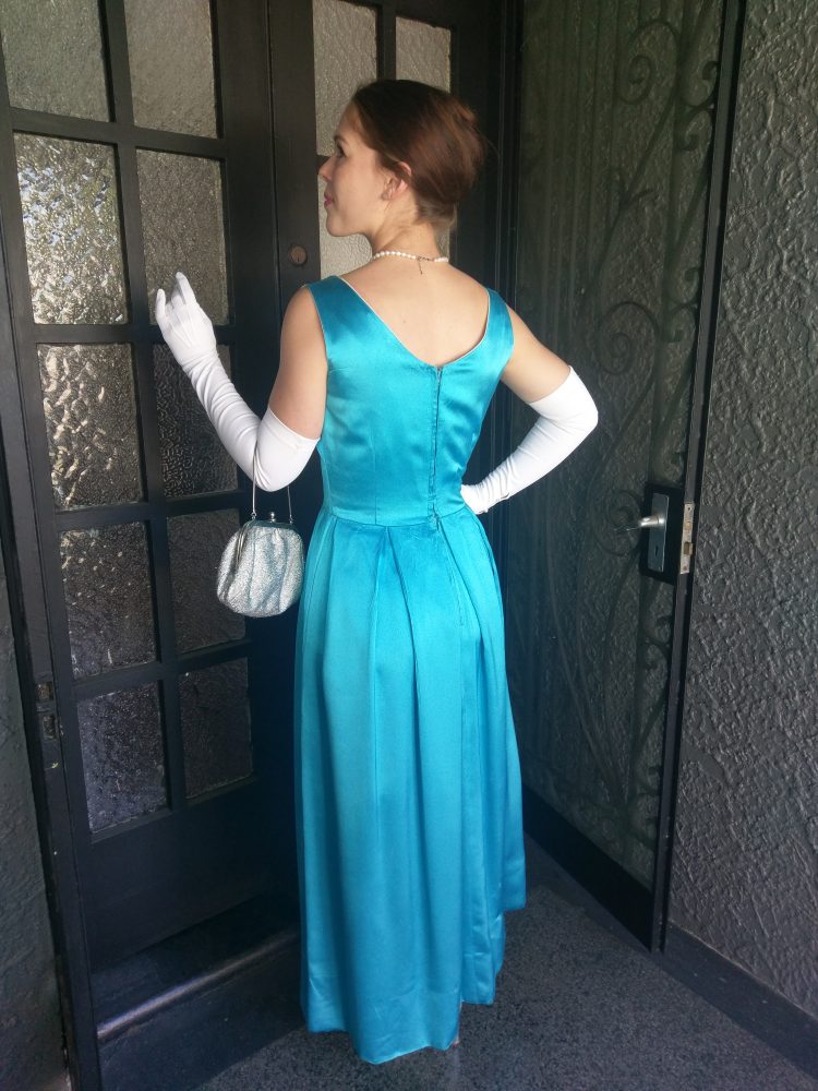 1960s Evening Gown, Satin, Cornflower blue, handmade, Size 10-12
