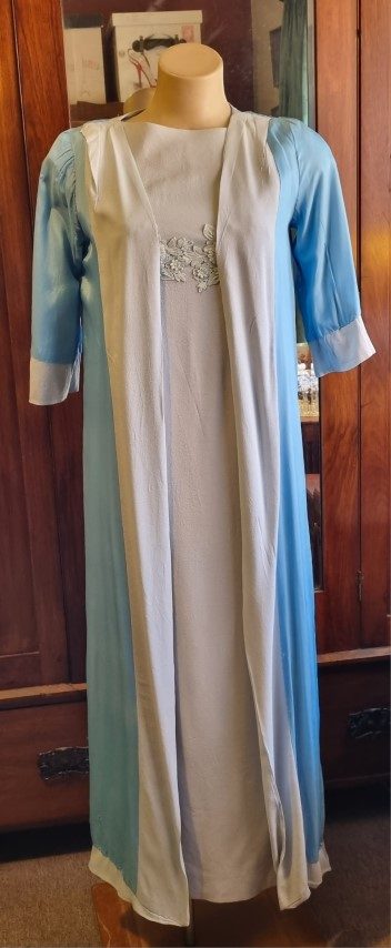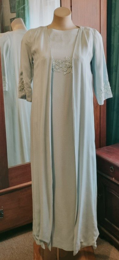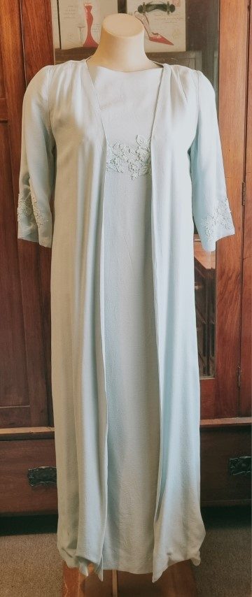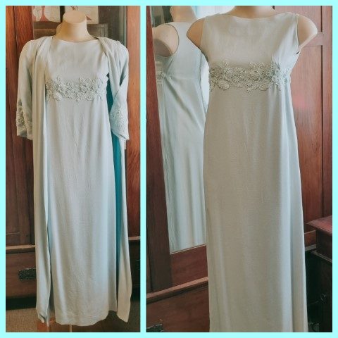1960’s Princess Line Gown & Jacket, Pale Blue, Handmade, crepe, size 8