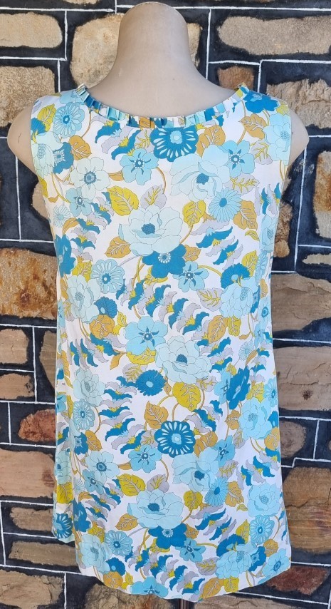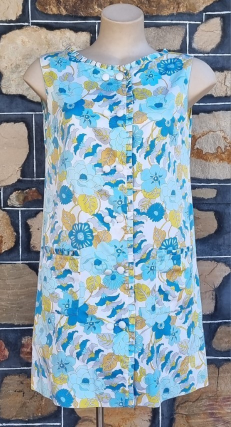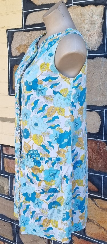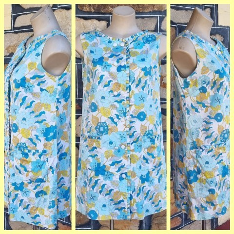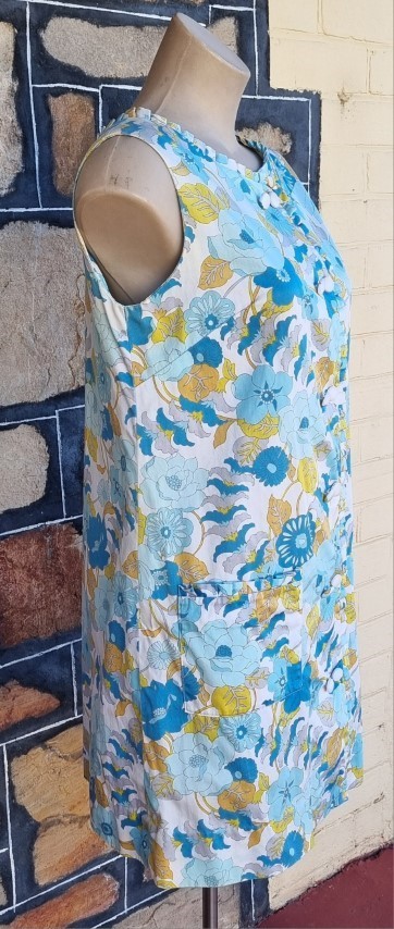 1960’s Shift Dress, Cotton, Blue Floral Print, Handmade, size S-M