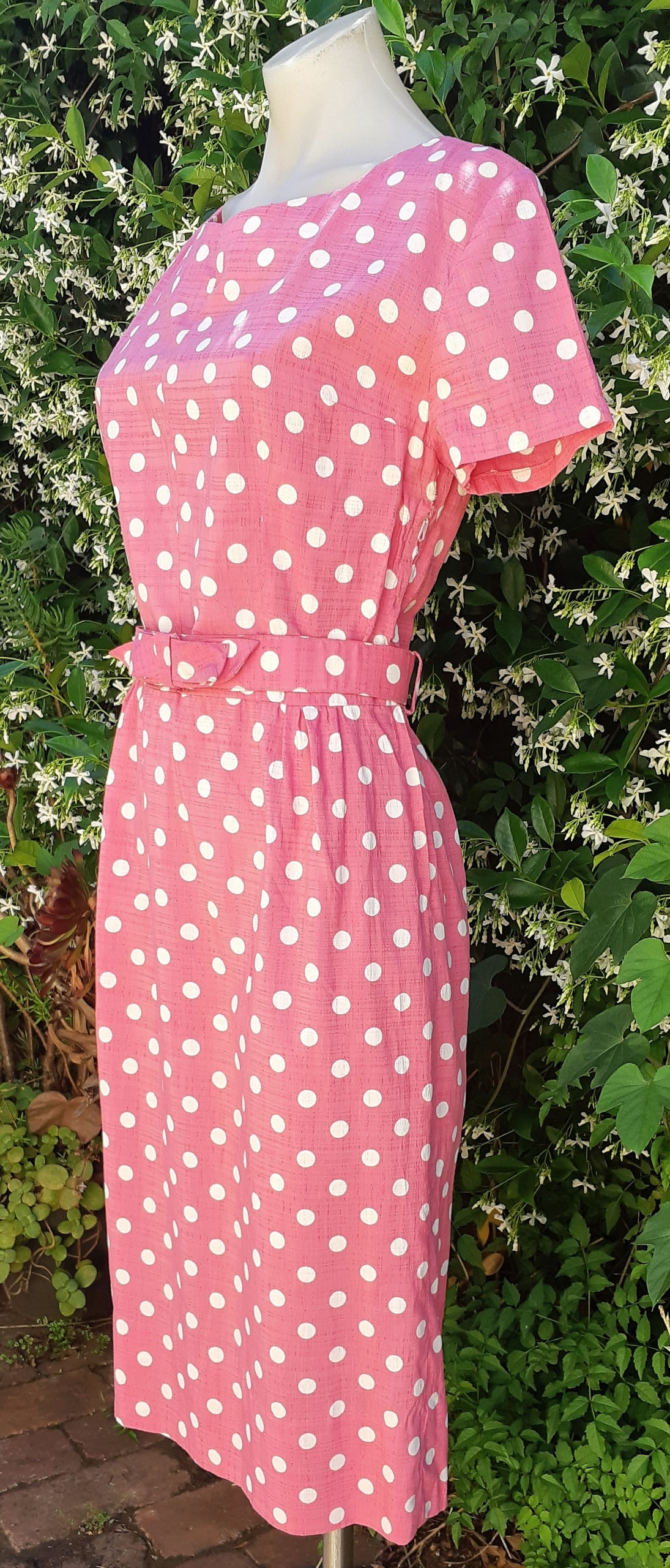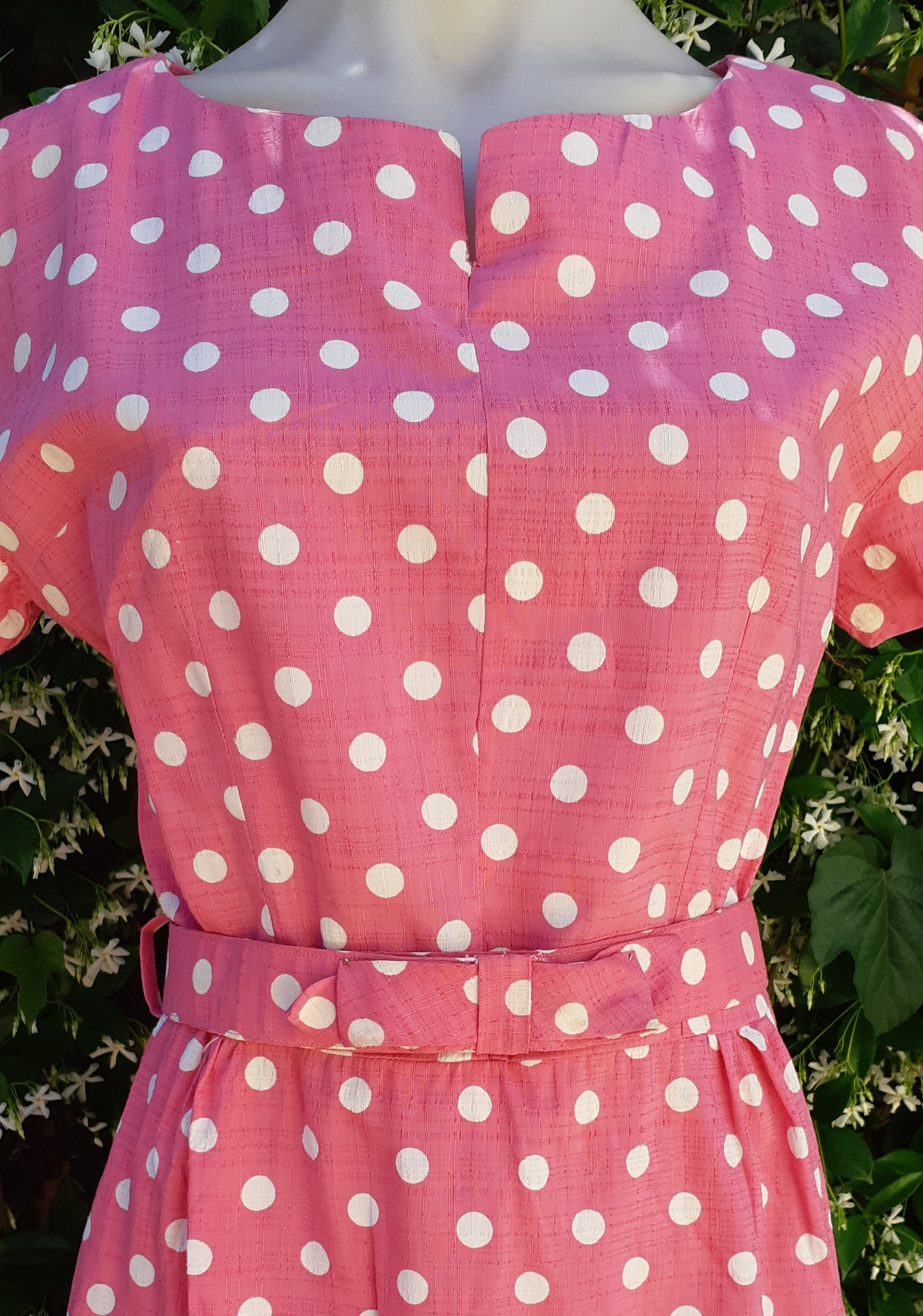 1960’s Original Shift dress, Pink/white Polka-Dot, Handmade.
