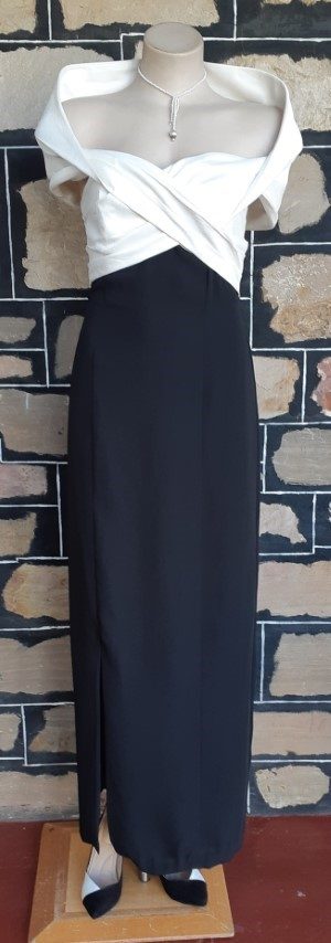 The self made bow belt connects with press studs and hook and eyes, side metal zip.