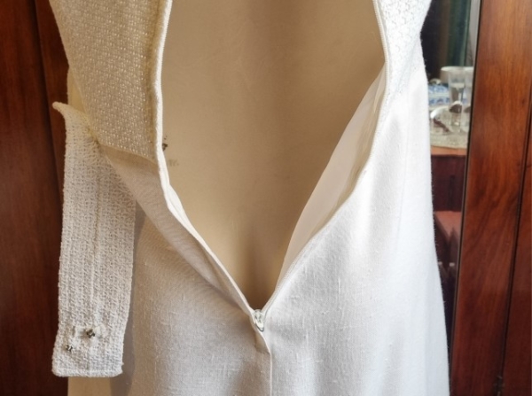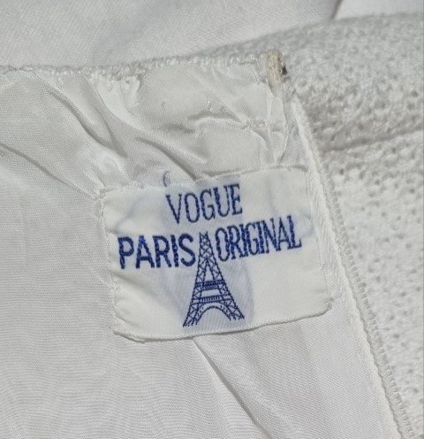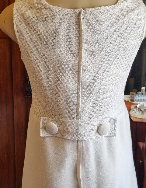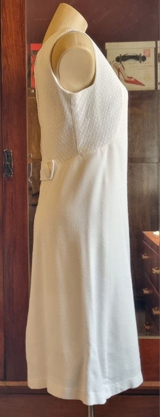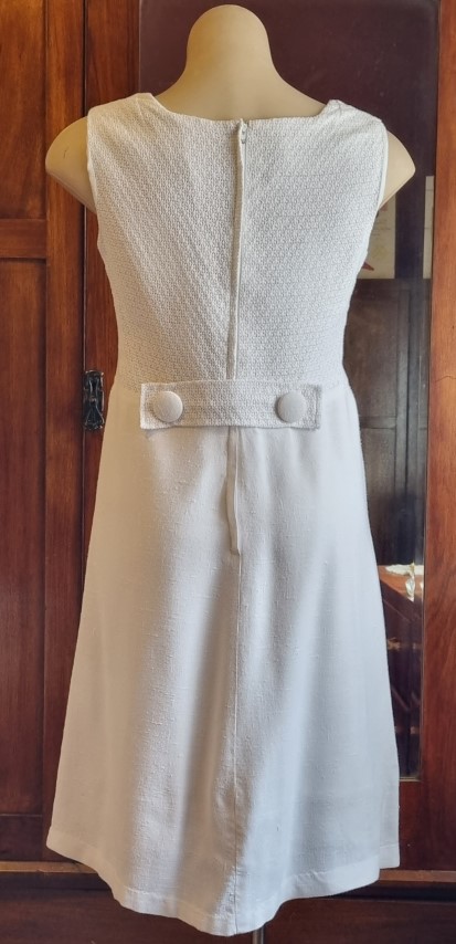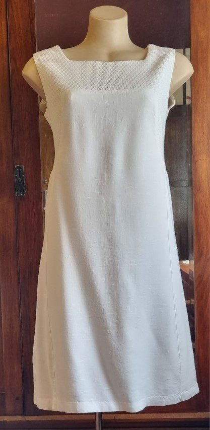 1960s Shift Dress, white, linen, by ‘Vouge Paris Original’, size 10-12