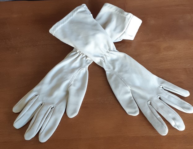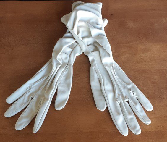 The cream 60’s vintage 3/4 length gloves have been freshly laundered and are in excellent condition.