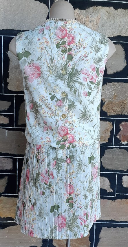 The top is buttoned at the back, is 96cm in the bust, 90cm at the waist.