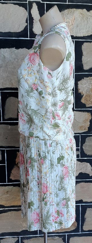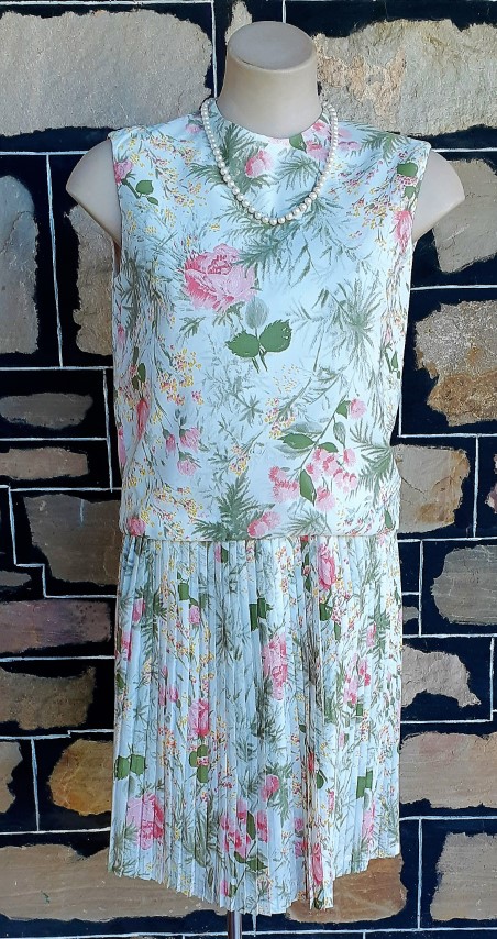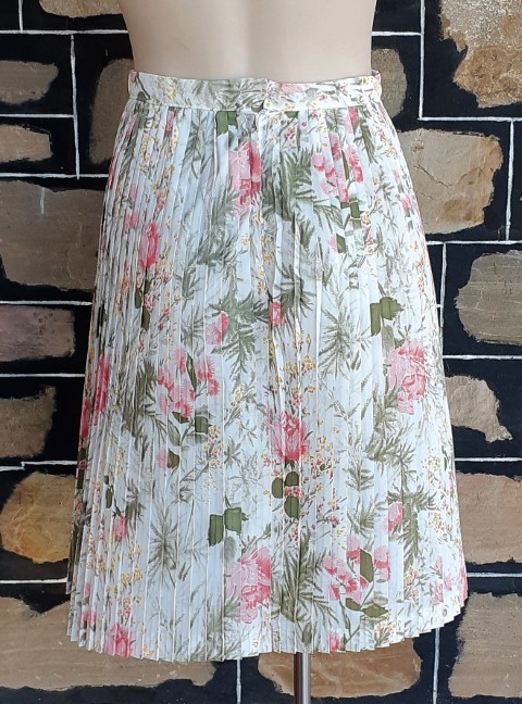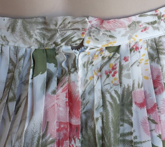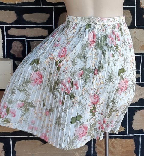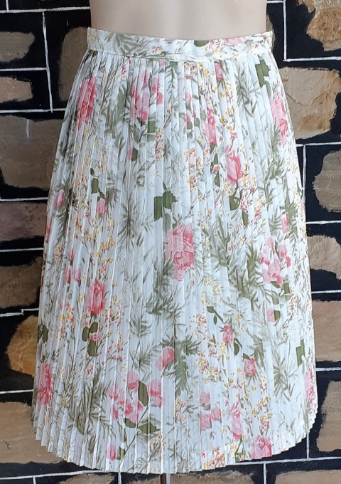 The gorgeous sun-ray pleat skirt is 66cm in the waist and is 57.5 cm long.