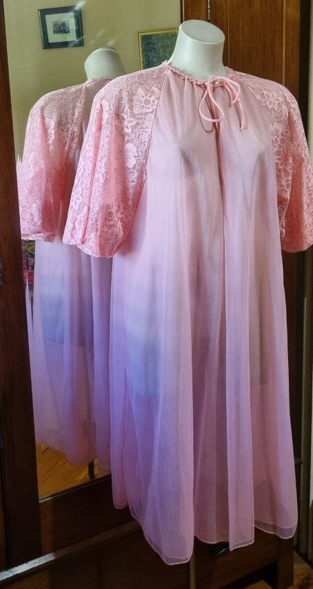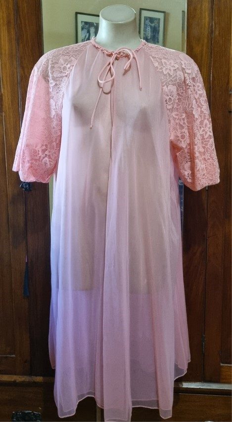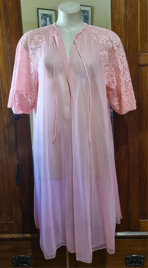 1960’s, Vintage Summer Dressing Gown, Apricot, nylon by ‘Vanity Fair’, size 14