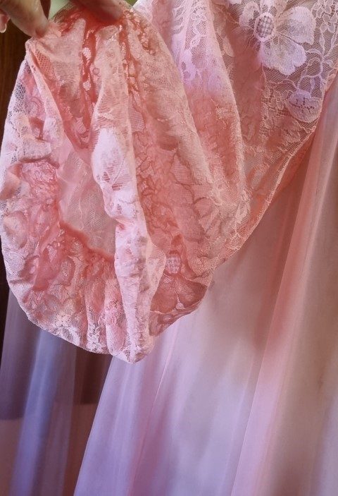 The sleeves on this pretty gown are exceptionally gorgeous, all lace and full.