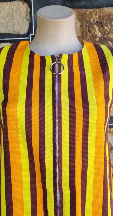 The ultimate groovy shift dress! Ring pull zipper, awesome colour combination. This dress would make the perfect beach/pool cover all too!.
