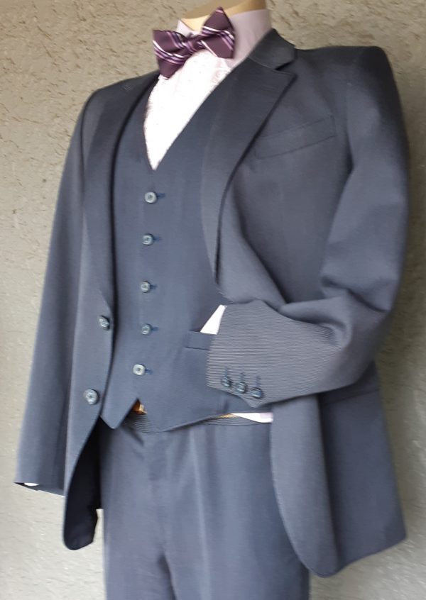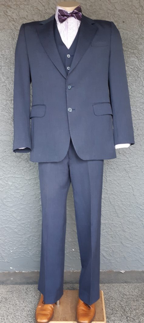 1970’s 3 piece suit by ‘Flair’, navy fine pinstriped.