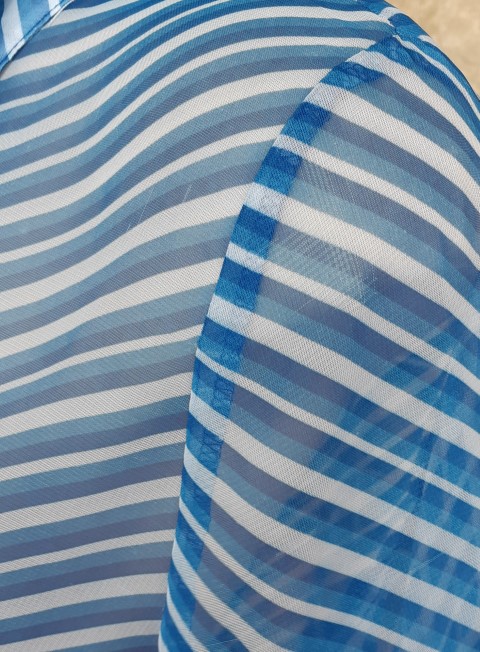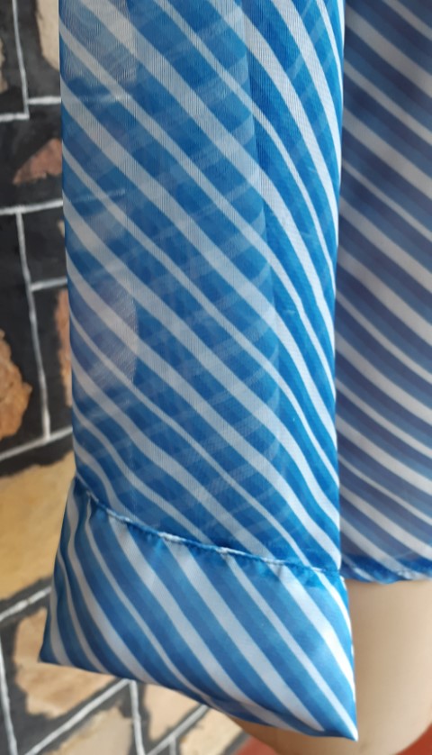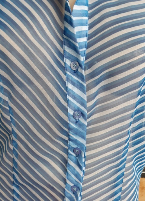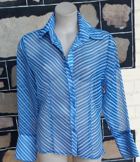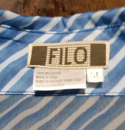 1970’s Blouse, polyester, blue/white, by ‘Filo’ size L