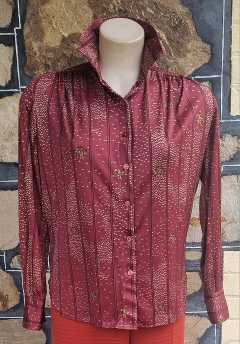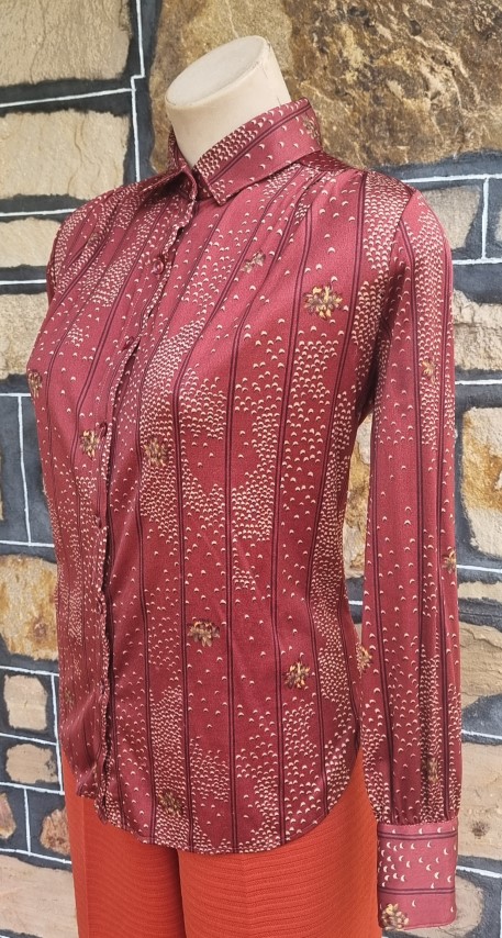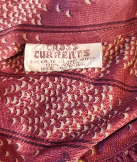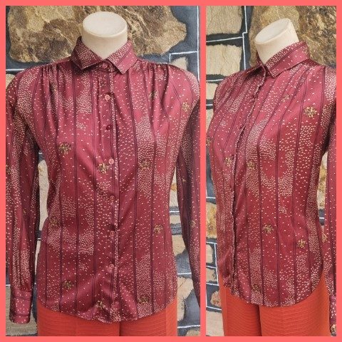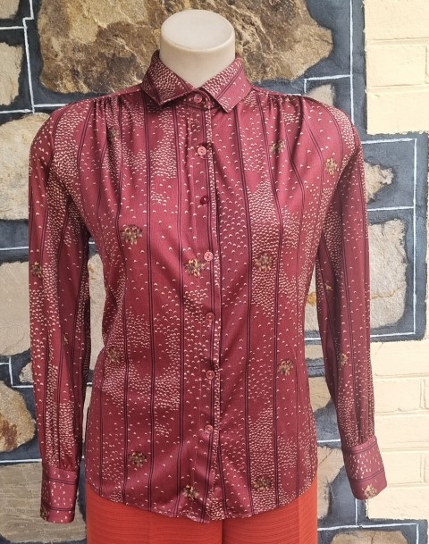 1970’s Blouse, Rust Print, polyester, by ‘Cross Currents’, size 14