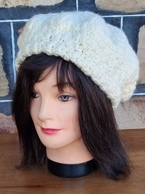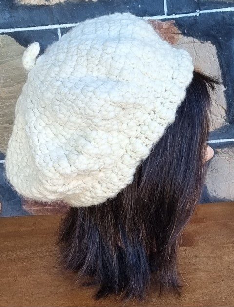 1970’s Crochet Beret, Cream, Wool, size S, handmade.