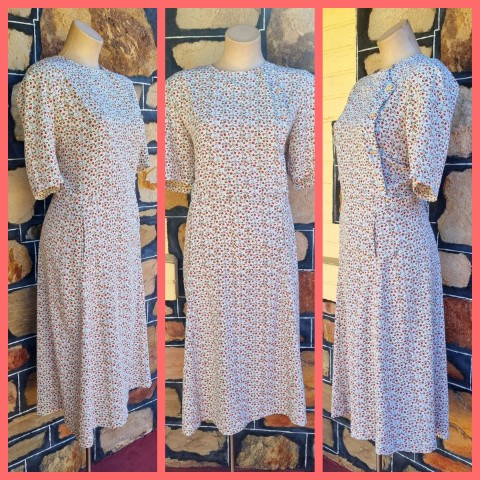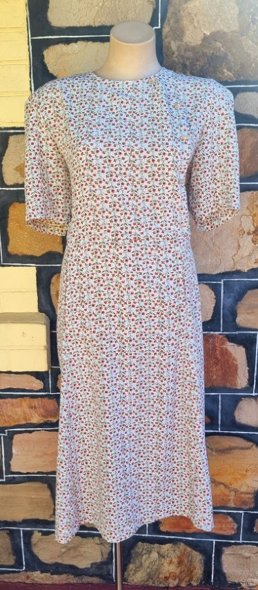 1970’s Day Dress, Floral Print, polyester, handmade, size 16
