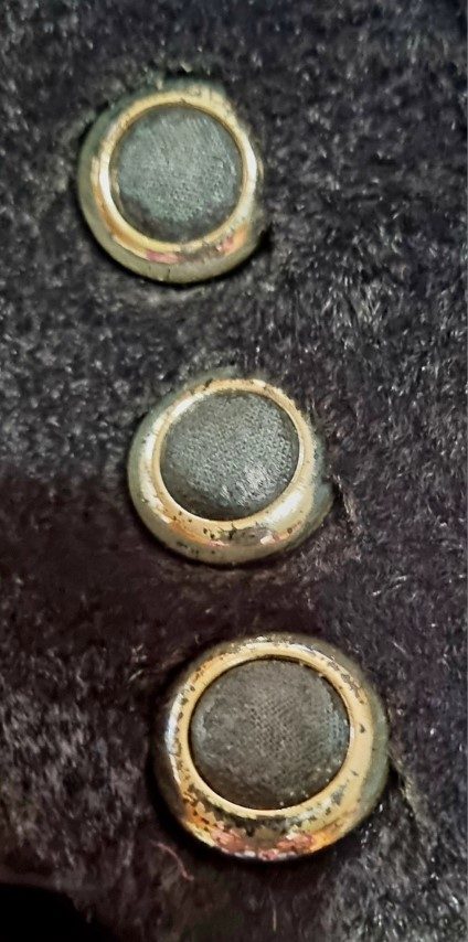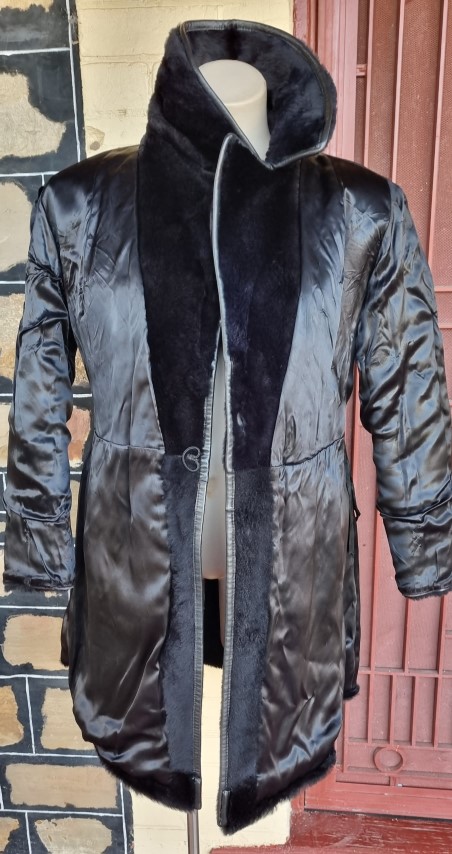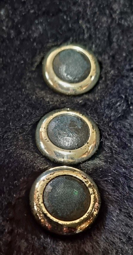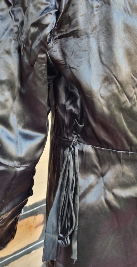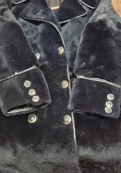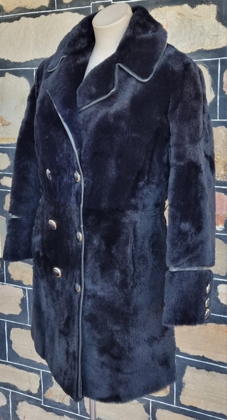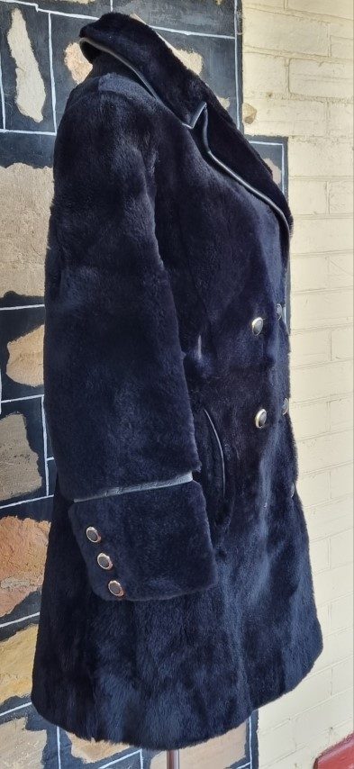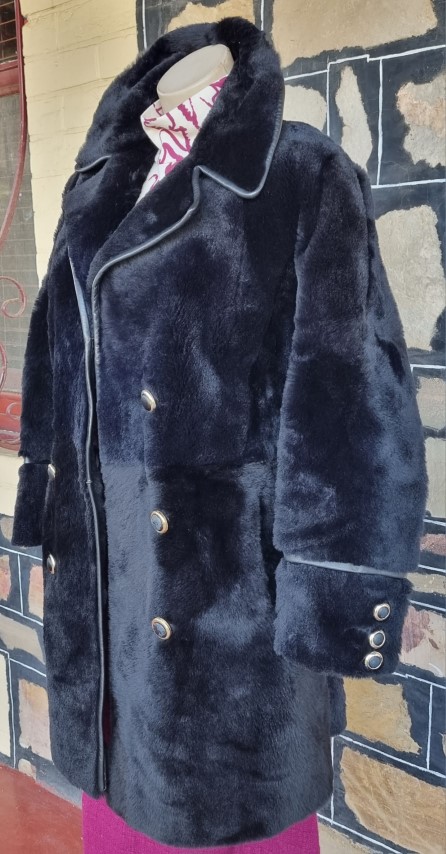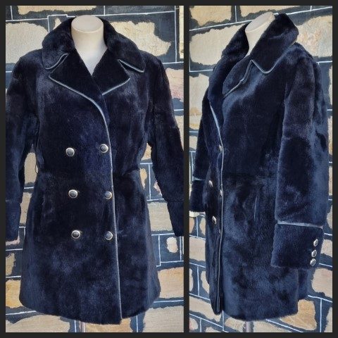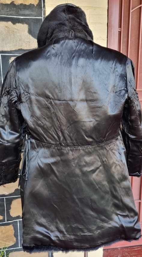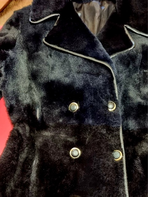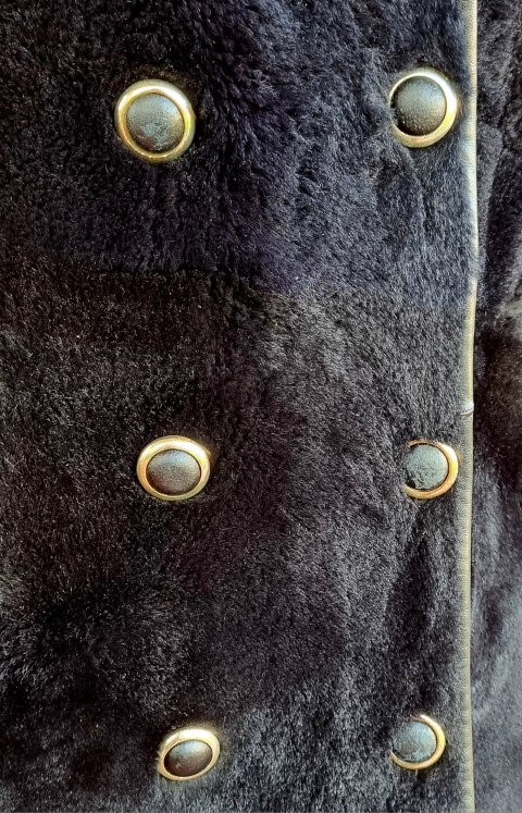 There is however the most minute flaw at the front right side. See the photos, it is on the waistline, but, truthfully, I didn’t even notice it until I laid it down on the table to measure it! The belt is missing too, which I would say covered up this flaw originally. The buttons are showing some wear too, they are pealing, but, again, hardly detract from the beauty of this gorgeous coat, but, for these reasons, I have lowered the price to compensate.