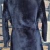 1970’s Faux Fur, Leather Trim, 3/4 length coat, Black, size 12