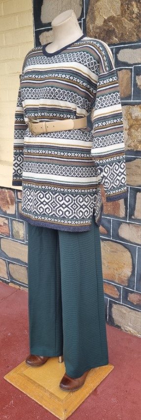 They look very cool for a total 70’s vibe wear them with our long knitted tunic top, as shown in the gallery.