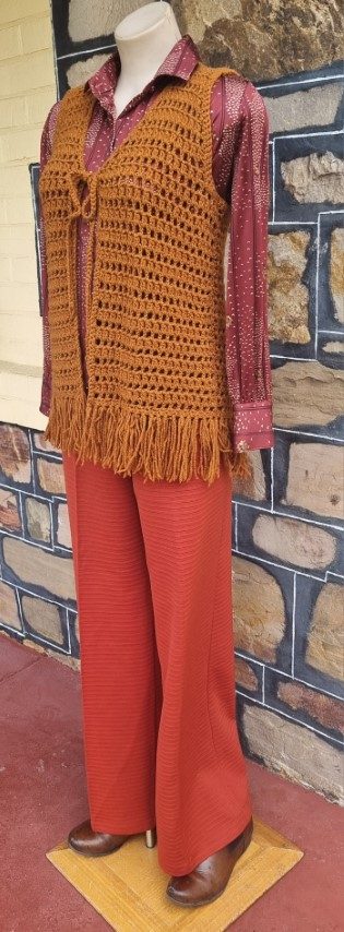 1970’s Flares, crimplene, rust, polyester, by ‘Target Australia’, size 20, although the label reads size 22, but in todays sizing it is a 20.