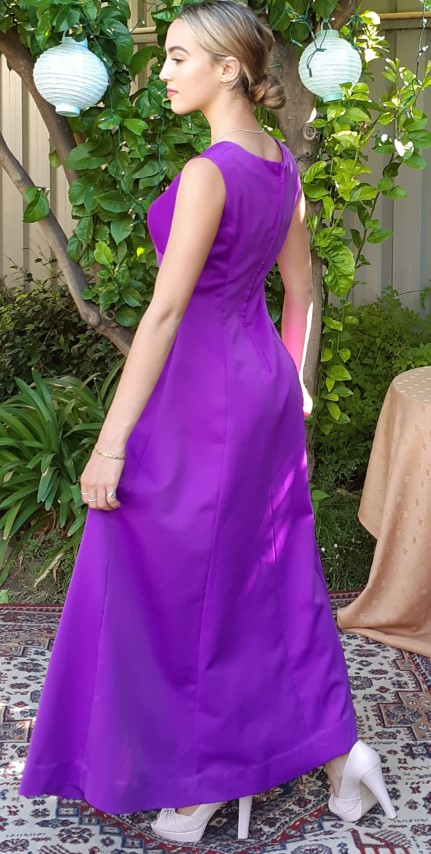 1970’s Gown, Princess Line, purple, polyester, hand made with love!