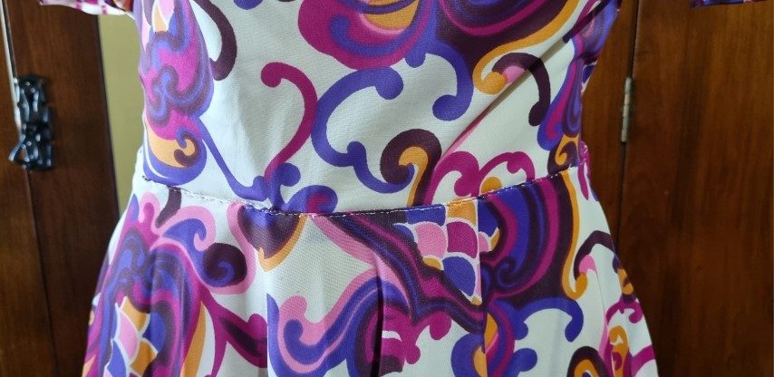 It can be worn with a slight off the shoulder look too, if you aren’t too broad, or you could make a looser by adding more elastic. There is a side zip.