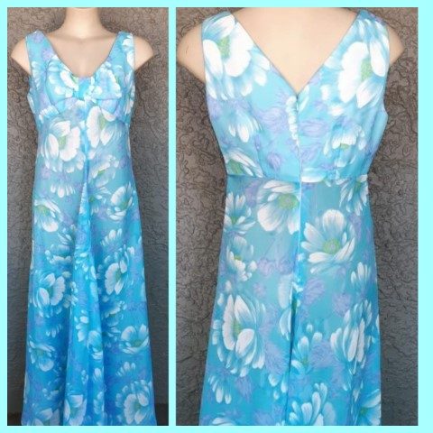 1970’s Summer Maxi dress, Handmade, Georgette, size 12.